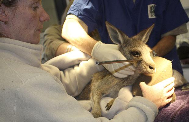 عمل جراحی بر روی یک کانگورو برای خارج کردن میله آهنی از بدنش – باغ وحشی در ملبورن استرالیا